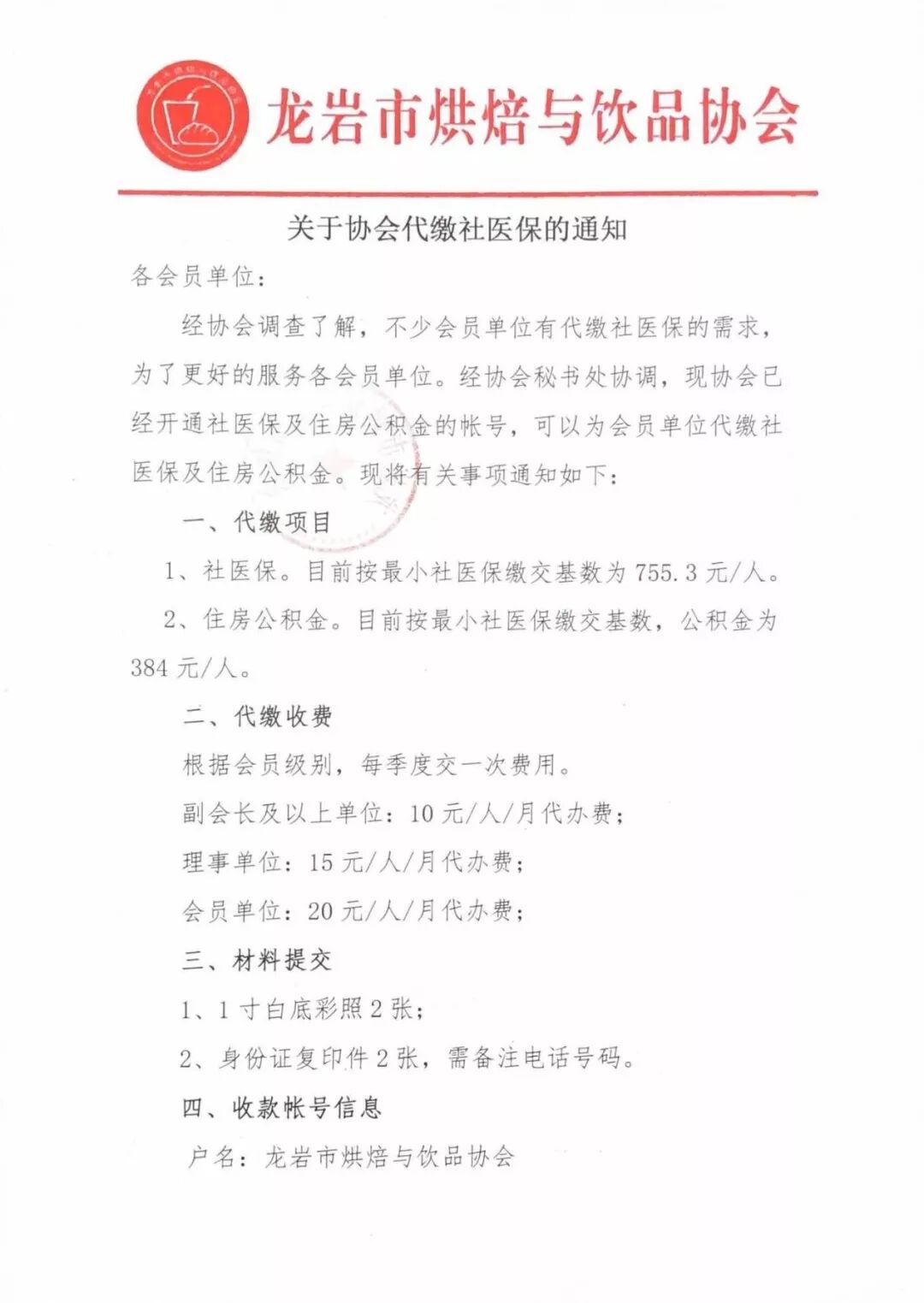 关于协会代缴社医保的通知